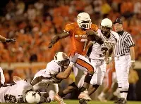 Bell of DeSoto, Texas, had a career night in OSU's 48-24 win over Wyoming. He carried the ball 21 times for 215 yards and three touchdowns from seven, 30 and 16 yards. It was the first 200-yard rushing performance of Bell's career and equaled the 24th-best single-game rushing effort in OSU history (Barry Sanders had 215 against Oklahoma in 1988). It was the second, three-touchdown game of Bell's career, and the senior from DeSoto averaged 10.2 yards per rush against Wyoming. His 215 yards last weekend also gave him 2,425 for his career to move him past Bob Fenimore into eighth place on OSU's career rushing chart.