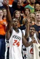 The orange-clad crowd of 13,611 was in a frenzy from opening tipoff -- hundreds of students slept in tents outside the arena the night before -- and the Cowboys responded with a 12-2 run to open the game.