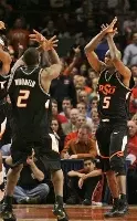 The Cowboys' first 9-0 run gave them a 56-46 lead with 9:12 left, but the Orange were able to recover and got within 58-54 on a rebound basket by Terrence Roberts with 7:29 to go.