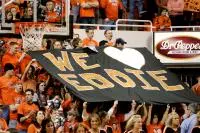 There were many signs of support for Sutton at Gallagher-Iba Arena, where the court is named for Sutton. One prominent banner read, ``Eddie, we love you ... We're behind you All The Way Coach!!!'' Numerous fans wore orange shirts with Sutton's face on them.